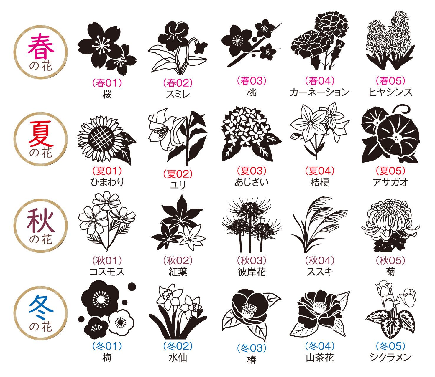 季節の花(春夏秋冬)のゴム印<20㎜角>