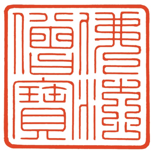 方形・円形の印面中に「仏法僧宝」の四文字を表す。釈迦滅後仏教教団の発達により、仏陀の絶対性・経法の普遍性・僧侶の和合性を仏教活動の本質とし、仏法僧三宝の重要性が説かれるようになった。